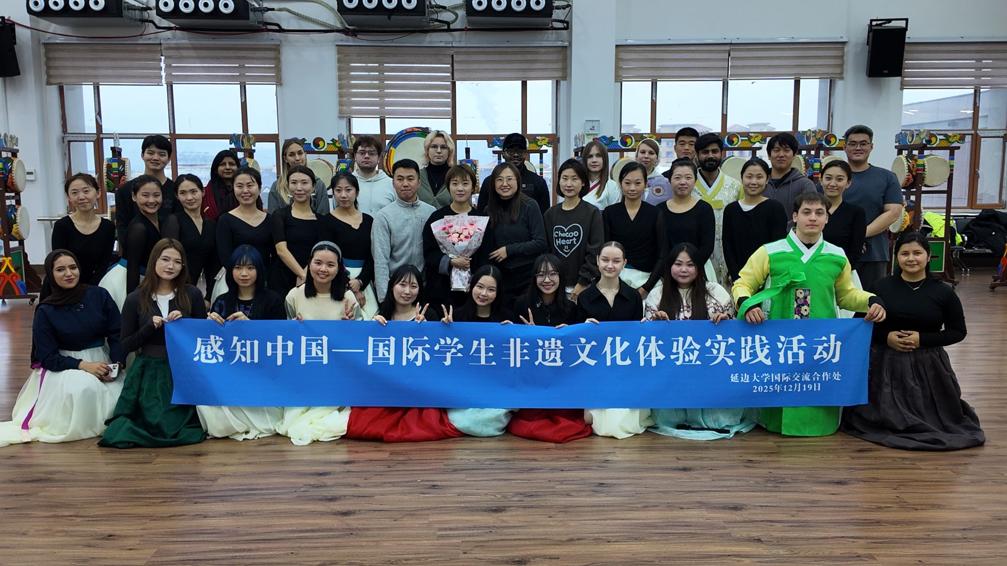 为促进中外文化交流互鉴,增进国际学生对中国非物质文化遗产的理解与体验,12月19日,延边大学国际交流合作处组织国际学生赴延边州非物质文化遗产体验基地--龙井市文化馆,开展国际学生“感知中国”非遗文化体验实践活动。