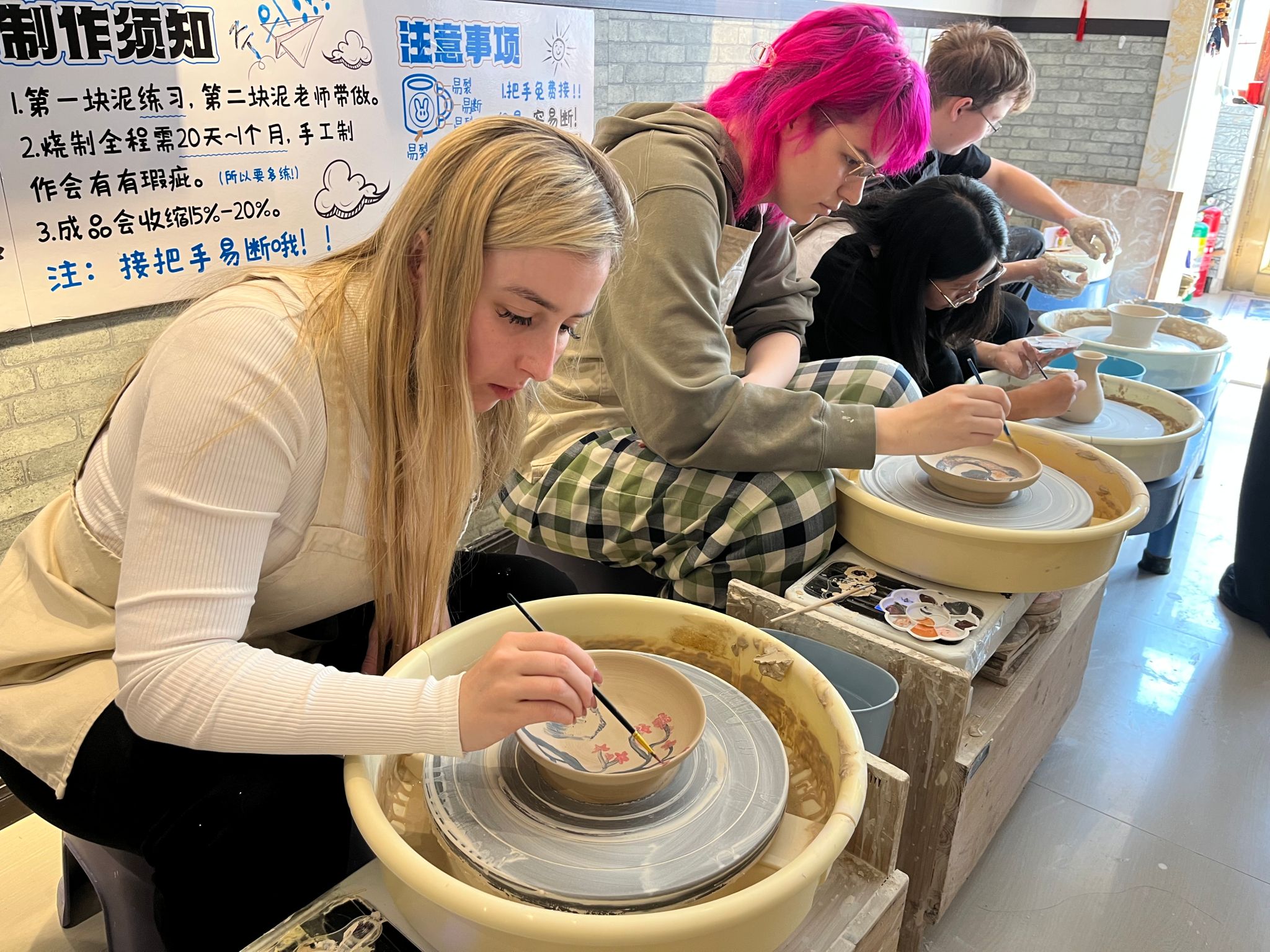 国际学生体验制作陶艺作品