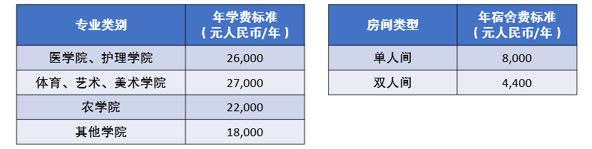 2.医疗保险费:含在学费内,无需单独支付。延期毕业阶段须自行购买。